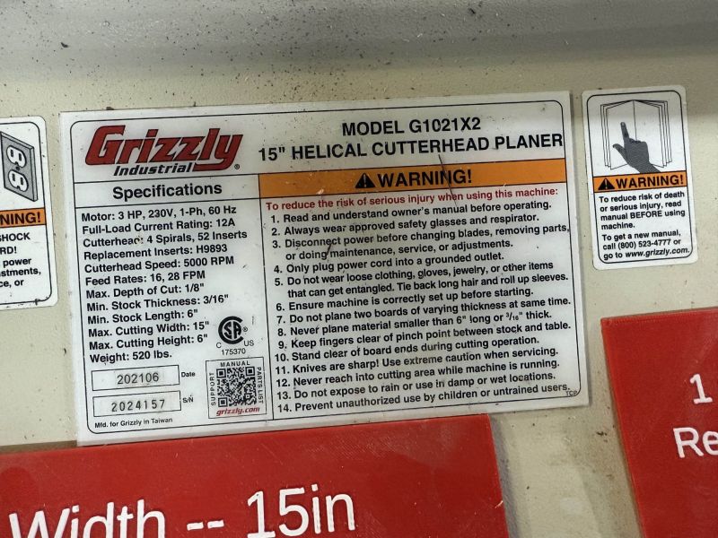 Grizzly planer serial